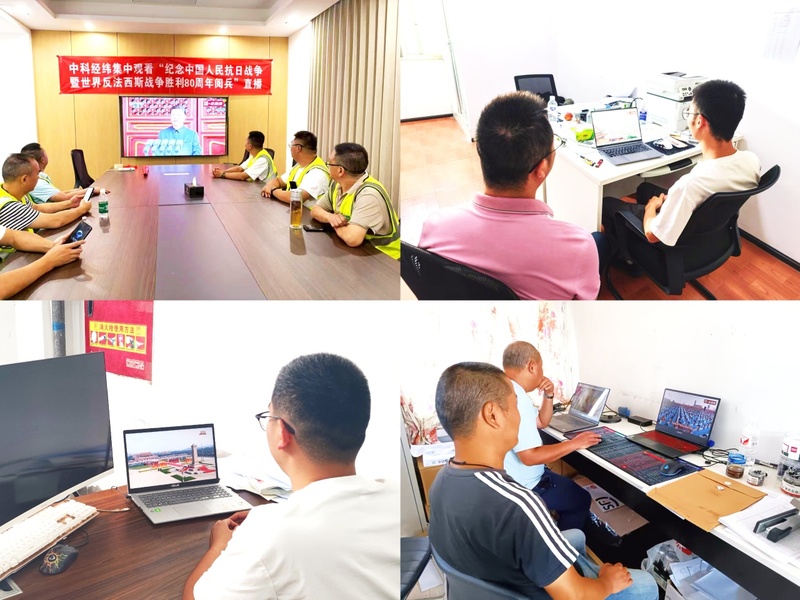 致敬伟大祖国,凝聚奋斗力量 | 中科经纬组织全体员工集中收看阅兵盛典抗日战争胜利80周年 9月3日,庄严时刻,共同见证。为铭记历史,缅怀先烈,弘扬爱国主义精神,中科经纬党支部组织全体员工以多元形式同步观看阅兵盛典。虽地域相隔、场景不同,但同一颗赤子心跨越山河万里,在此刻同频共振。 ![]() ![]() ![]() ![]() ![]() ![]() ![]() 抗日战争胜利 8 0 周年 ![]() 总公司主场:旗帜高扬,誓言铿锵 总公司会议室内,国歌奏响的瞬间,全体同仁肃然起立、齐声高歌。歌声如潮、信念如炬,这一刻,国旗不仅飘扬在荧屏中,更矗立在每个人心灵的至高处。他们以最庄重的仪式感,代表公司发出了对祖国最真挚的告白。 ![]() ![]() 项目一线:坚守中见证,注目亦是致敬 在机器轰鸣的项目现场,在远离城市的建设一线,项目部同事以独特的方式参与这场盛会。他们坚守岗位,在项目部办公室内齐聚屏幕前,以方寸之窗览阅兵盛况,以专注之心致敬伟大时代,于施工间隙庄重观看。虽无齐声高歌,但坚毅的目光、挺拔的脊梁,与脚下热土紧紧相连,用实际行动诠释着"建造美好中国"的誓言。 ![]() ![]() 各分公司:屏前凝聚,赤诚同心 各地分公司会场内,员工们整齐端坐、全神贯注,紧握的双手、澎湃的眼神,无一不流露着发自内心的自豪与感动。他们以专注传递敬意,以凝视表达祝福,同样动人、同样庄严。 ![]() ![]() 形式有别,敬意相通 无论是在主会场起立高歌,在项目一线坚守,还是在分会场凝神,每一位员工都以自己的方式表达对祖国的热爱。仪式虽有不同,但赤子之心毫无二致。爱国,从来不止一种表达;致敬,始终拥有万千姿态。 ![]() 阅兵,是国力的展示,是精神的洗礼,更是对我们每一位中科经纬人的深刻动员。 让我们以此为契机,将爱国情、报国志熔铸于平凡岗位,用行动响应时代号召。 ——与国同梦,与司同行;不负时代,不负赤心! ![]() ![]() ![]() ![]() ![]()